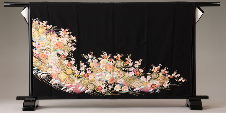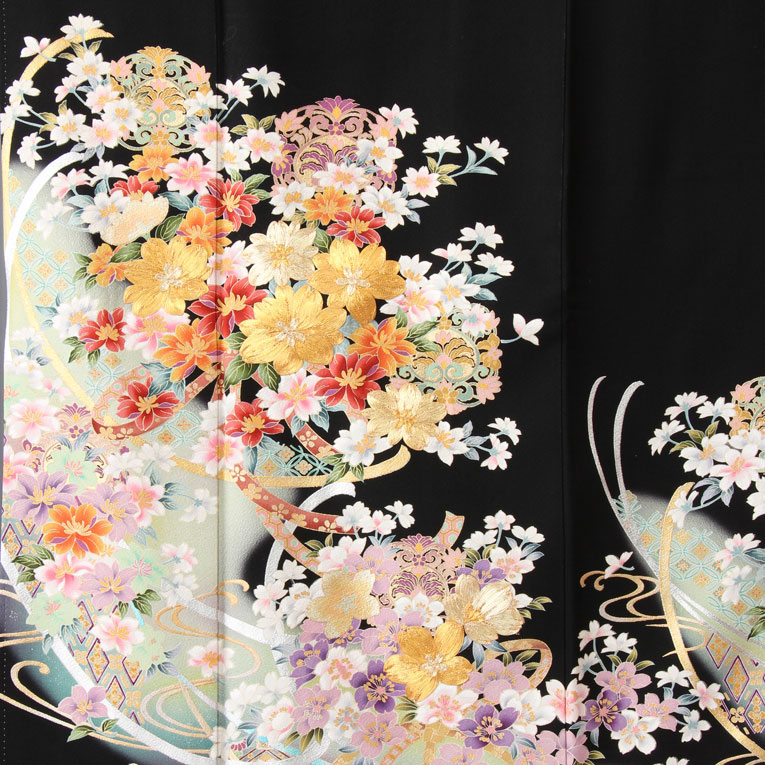 百合やなでしこ、桜の柄付。美しい花々がお祝いの席を華やかに装います。